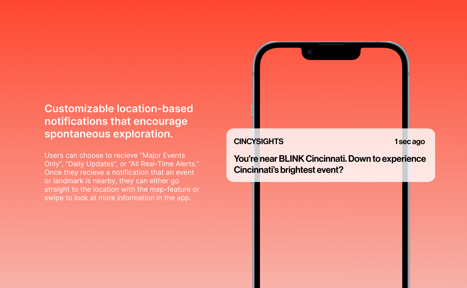 A mobile iOS app designed to help new Cincinnati residents discover nearby landmarks and events through real-time, personalized notifications.