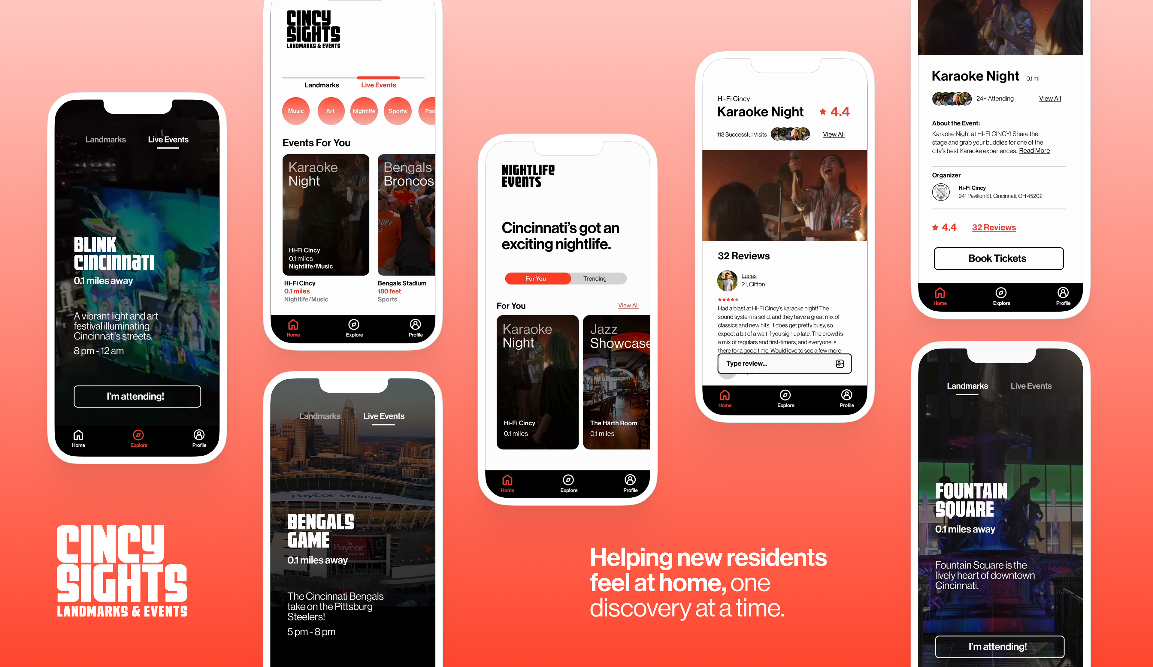 A mobile app that helps new residents in Cincinnati feel a sense of belonging by seamlessly connecting them to local landmarks and events.